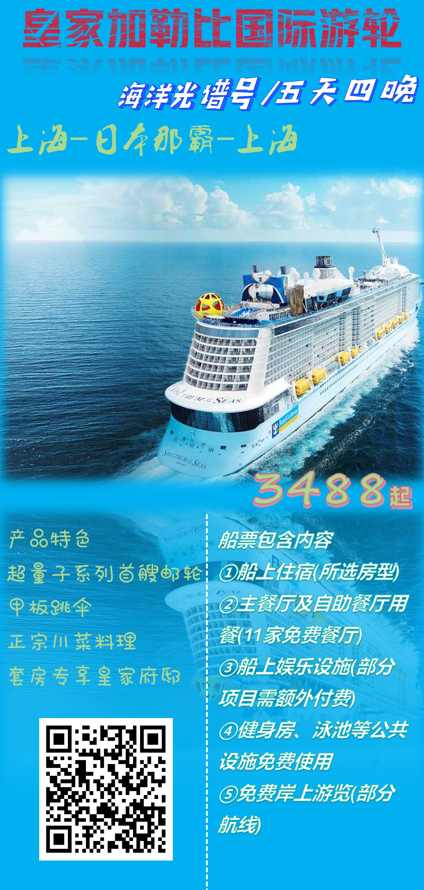 今天迎来全天的邮轮海上巡游,让轻松舒适来开启您的邮轮之旅。您可以根据自己的喜好,享受船上的休闲娱乐设施及各式美食,体验丰富多彩的娱乐项目。